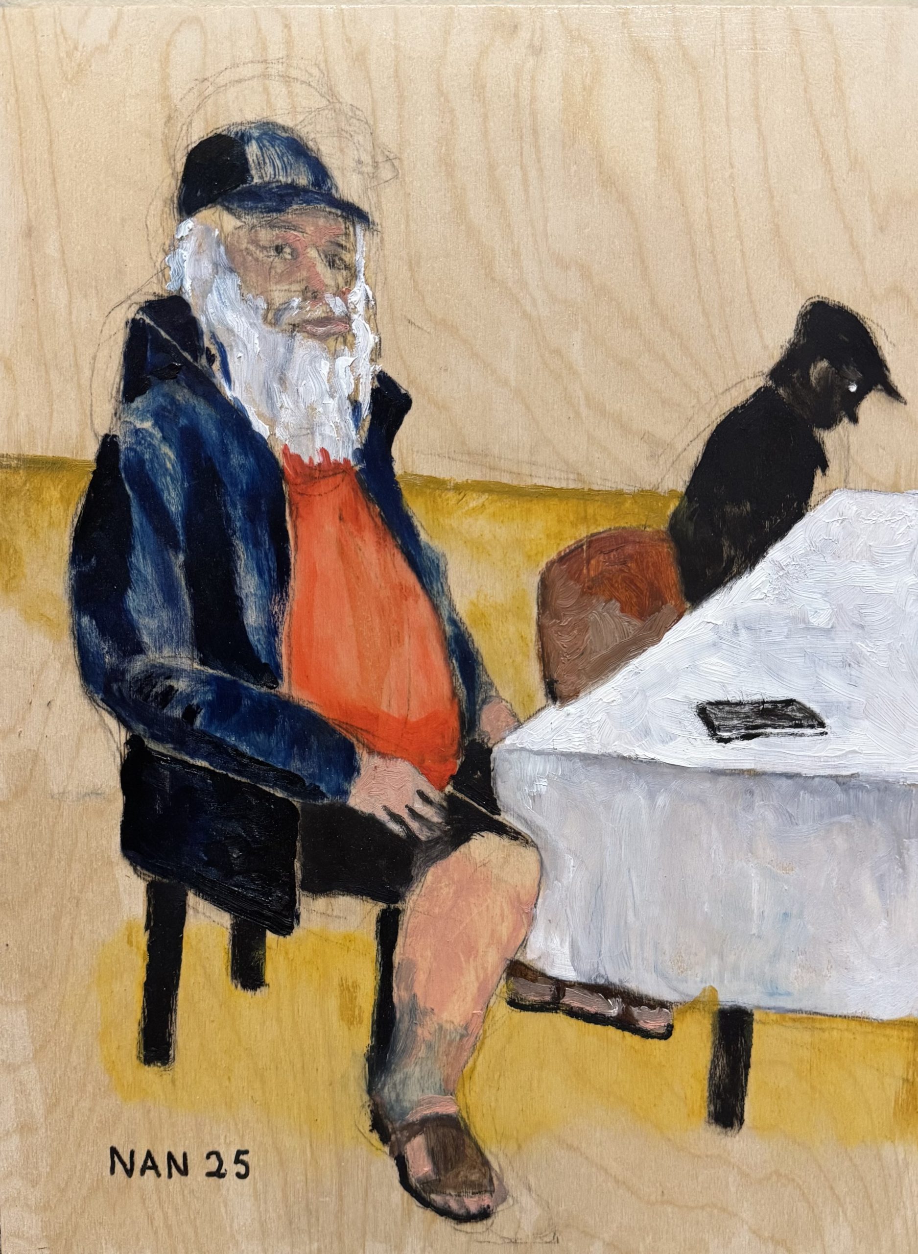 This deeply human series grew from Ferrier’s time attending the free breakfast program at Trinity United Church in Summerside, where she began drawing the people around her — those attending the breakfast, their families, and others who passed through the space. Drawn to what she describes as their “interesting faces,” Ferrier set out to highlight people who are not often the focus of gallery exhibitions.