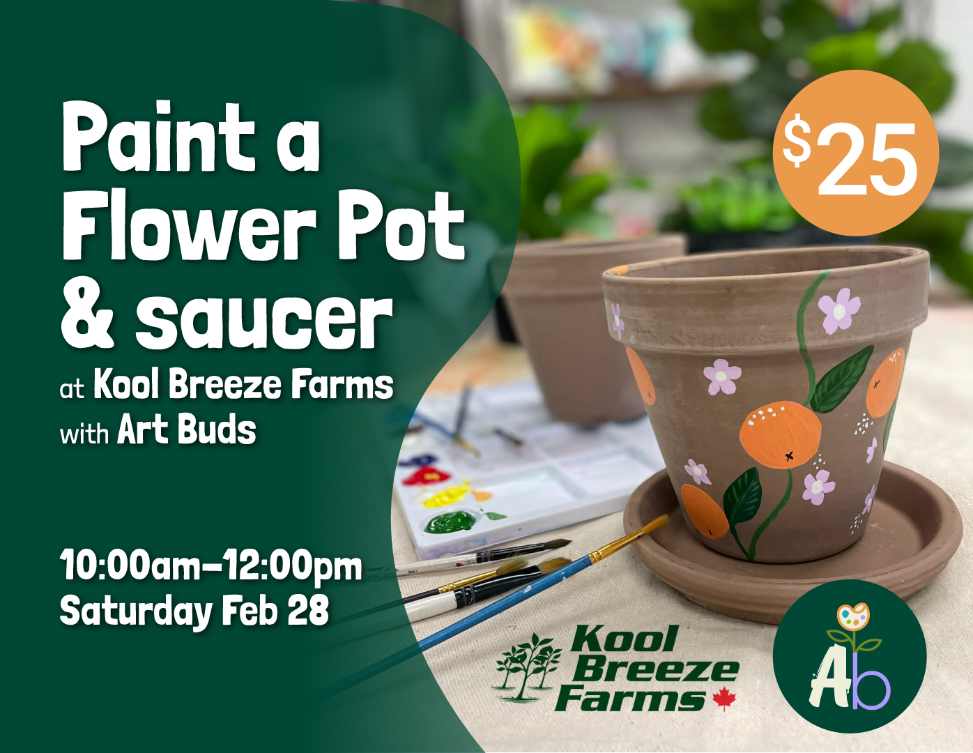 Set in the cozy, welcoming atmosphere of Kool Breeze Farms, this relaxed morning is all about creativity, connection, and a little joyful mess. Kiele from Art Buds will share tips and techniques to help bring your vision to life—no experience needed.