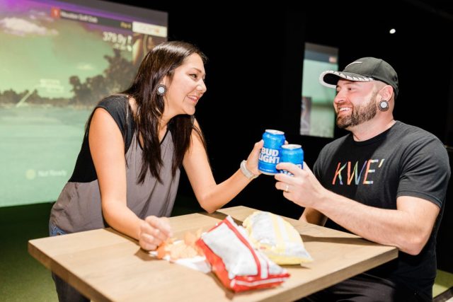 Featuring three GOLFIN golf simulators, players can tee off on up to 500 world-class courses from around the globe, dial up the friendly competition, or simply enjoy a relaxed round with friends. Snacks are available for purchase to keep the good times rolling.