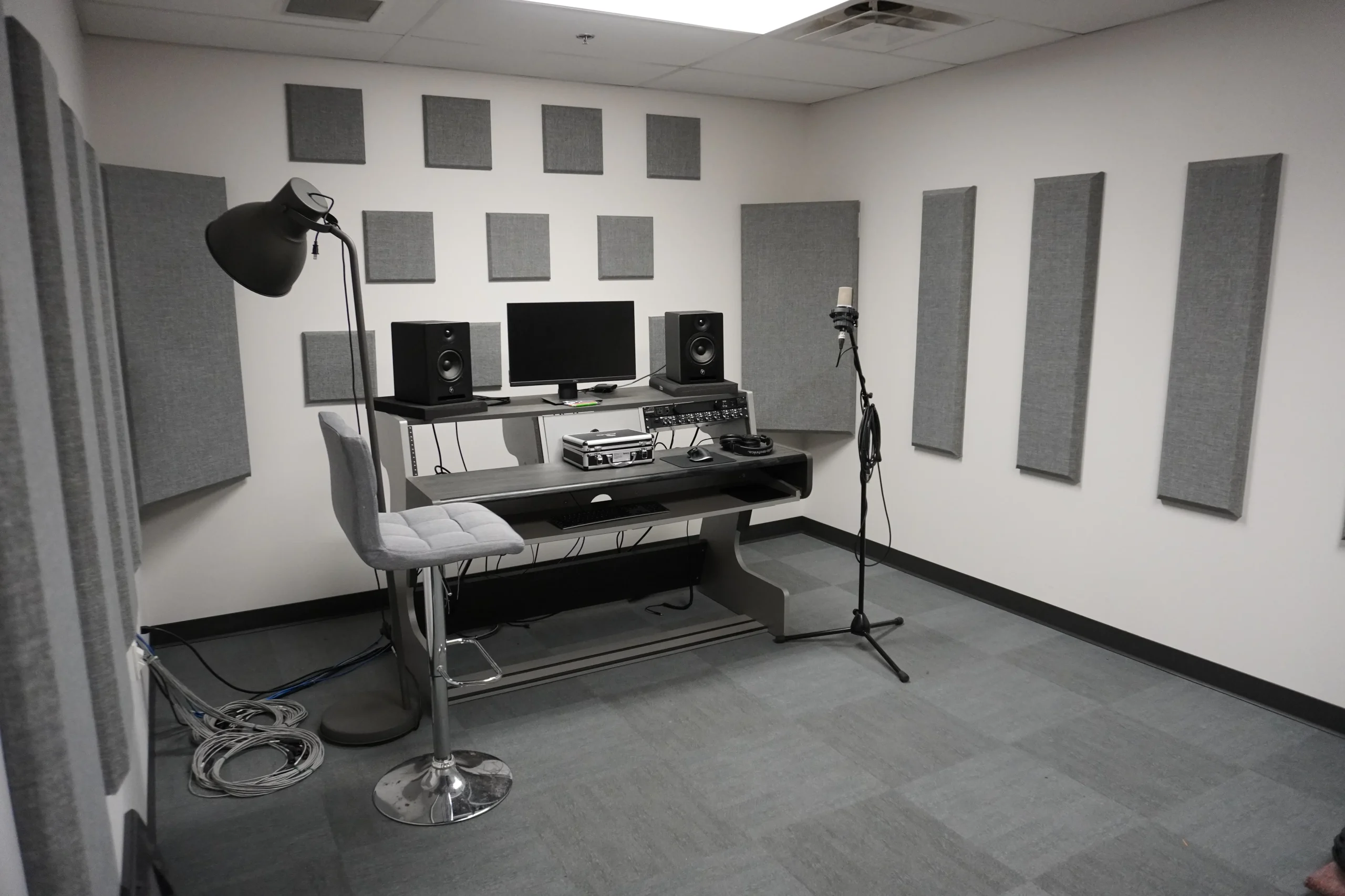 • Recording studio, adaptable for music, podcasts, rehearsals, or breakout meeting spaces